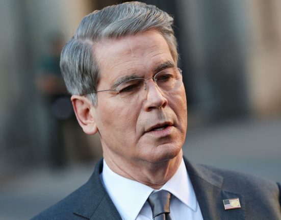 U.S. Treasury Secretary Scott Bessent speaks to the press, on the day of U.S.-China talks on trade, economic and national security issues, in
