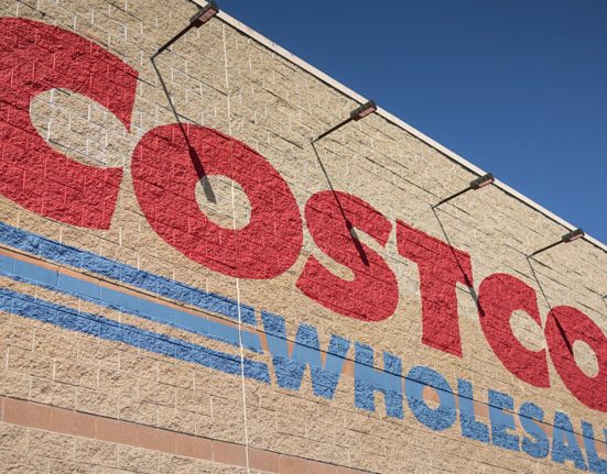 The sign on the side of a Costco is seen in Hawthorne, California, on April 4, 2025. Jay L Clendenin | Getty Images