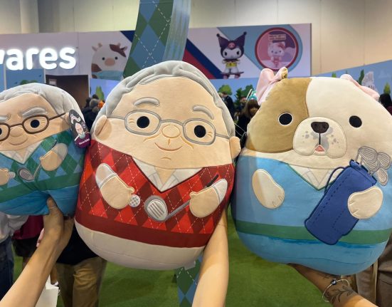In this seven image composite, shareholders gather prior to the start of the Berkshire Hathaway annual meeting in Omaha, Nebraska, U.S., on Saturday,