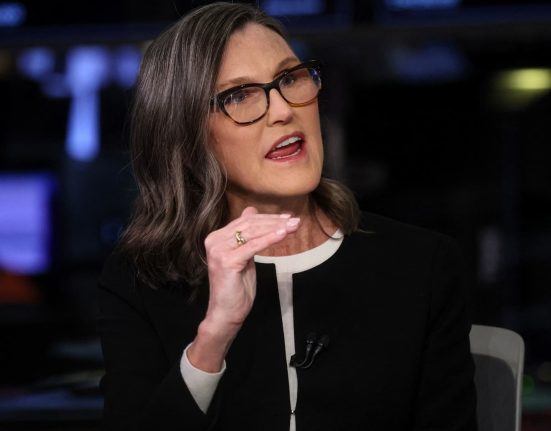 Cathie Wood, CEO of Ark Invest, speaks during an interview on CNBC on the floor of the New York Stock Exchange on Feb.