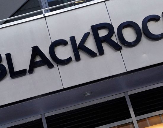 The BlackRock logo is pictured outside the company’s headquarters in the Manhattan borough of New York City on May 25, 2021. Carlo Allegri