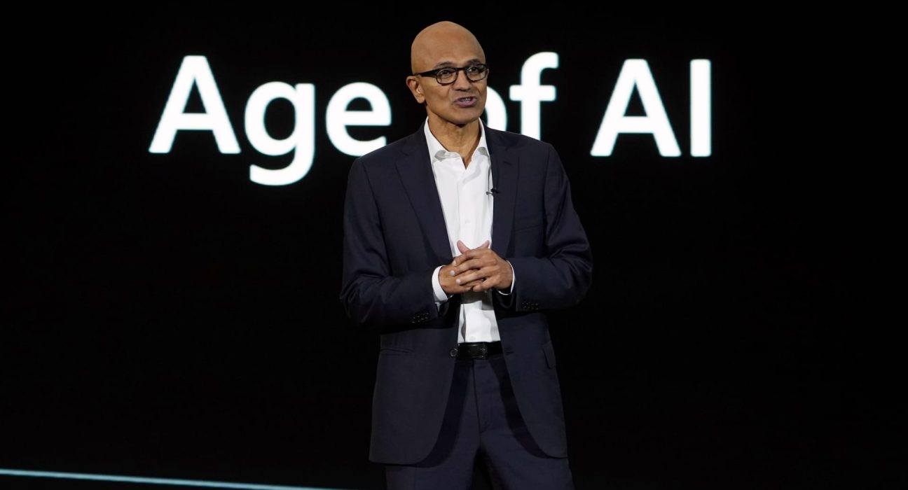 Microsoft CEO Satya Nadella speaks at a company event on artificial intelligence technologies in Jakarta, Indonesia, on April 30, 2024.